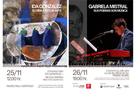 Museo Ralli Santiago celebrará 33 años exhibiendo y difundiendo su colección latinoamericana en nuestro país, con un ciclo de actividades gratuitas que incluyen un homenaje a una gran artista visual nacional y un concierto dedicado a conmemorar los 80 años del premio Nobel de la poetisa chilena Gabriela Mistral. Este ciclo de actividades está organizado en conjunto con la Escuela Moderna de Música y Danza junto con la colaboración de la Corporación Cultural de Vitacura, de la Extensión Cultural de la Universidad Finis Terrae y de Galería NAC.